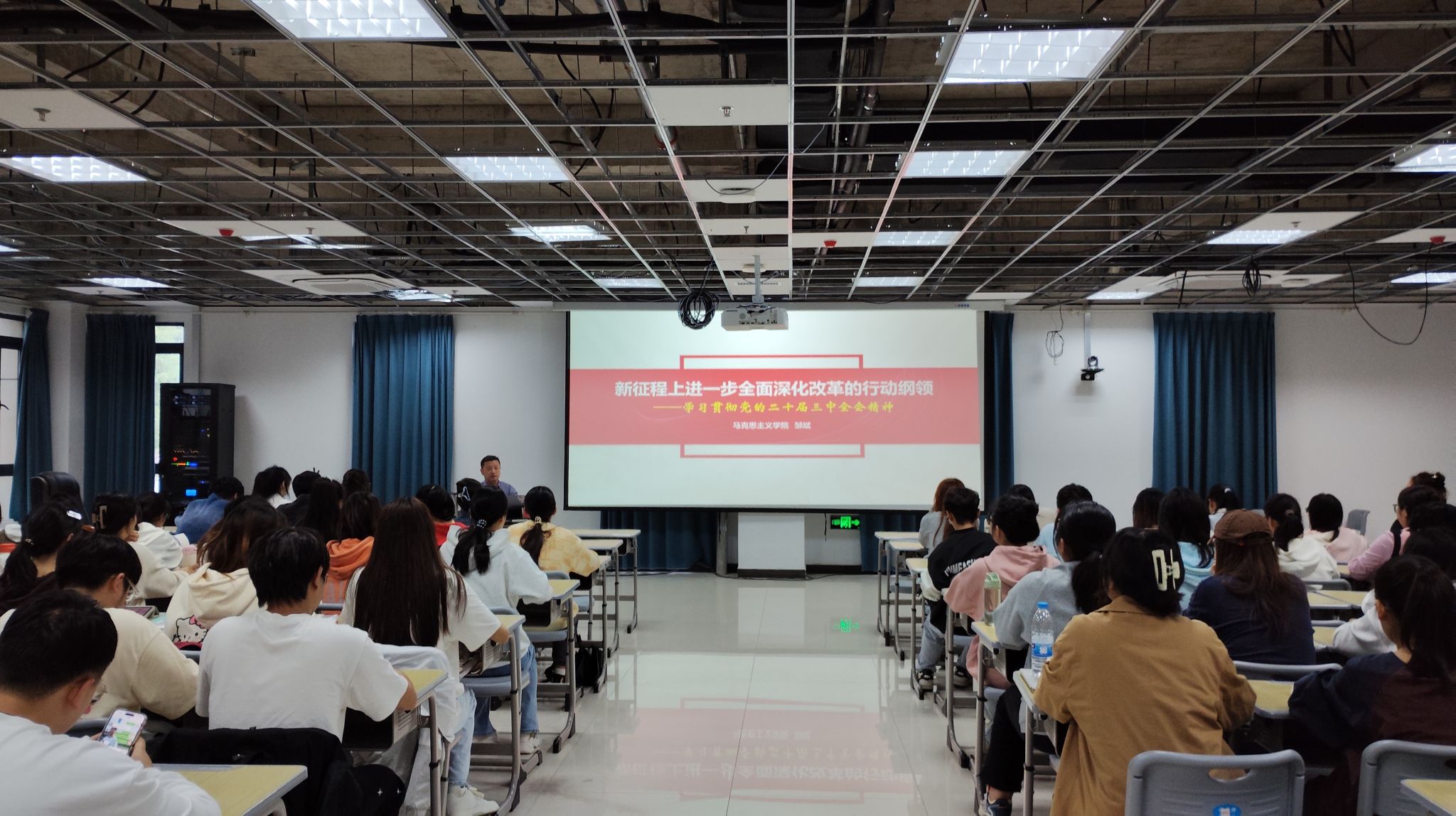 开学仪式结束后,邹斌为全体学员和全体员工党员作了《新征程上进一步全面深化改革的行动纲领——学习贯彻党的二十届三中全会精神》的专题辅导报告。(撰稿:潘俊杰 摄影:陈俊岭 编辑:田梦甜 审核:邹斌)