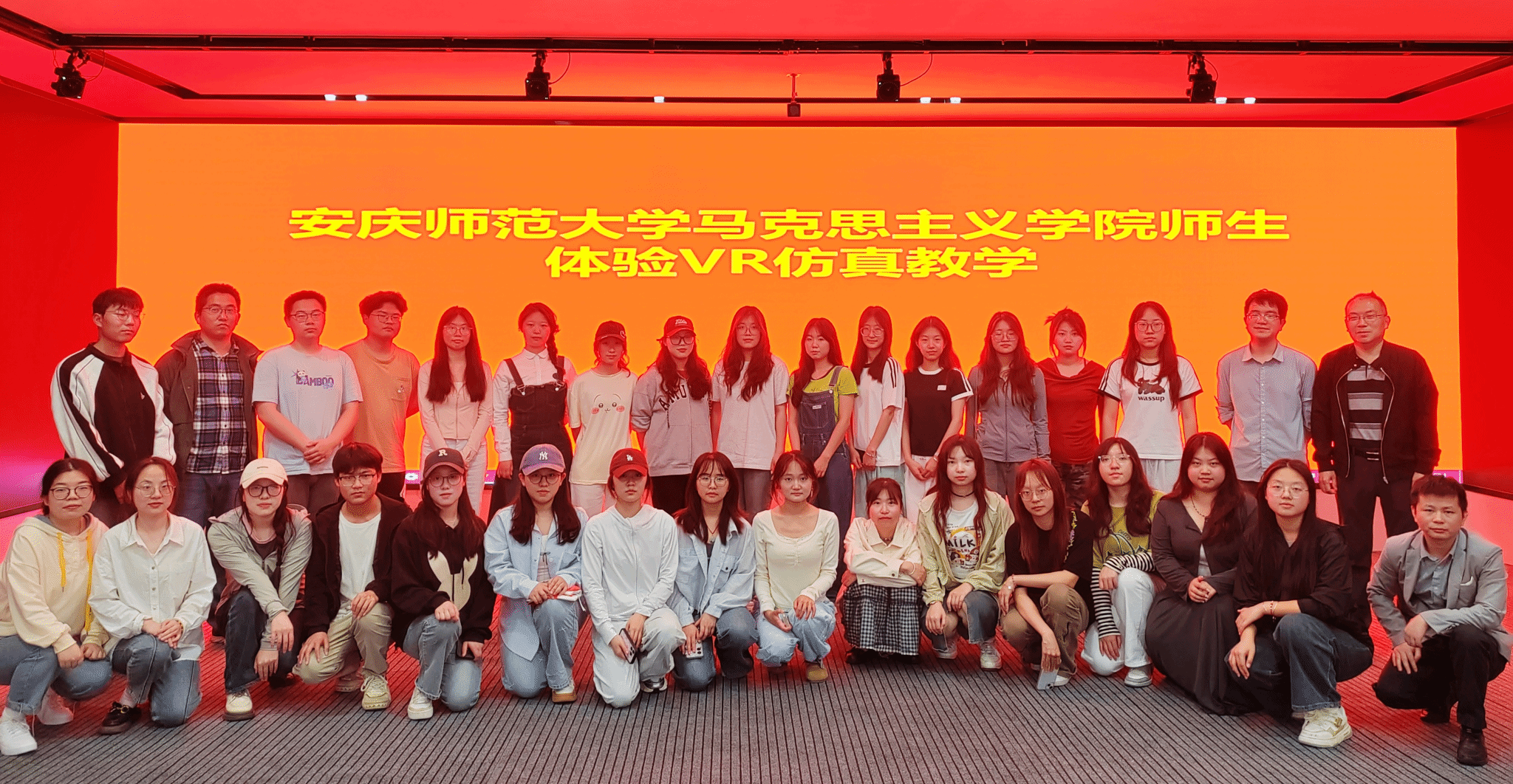 4月17日,中国近现代史纲要教研室全体专职教师以及2023级延乔班员工赴安庆医药高等专科公司太阳成tyc122cc集团思政课虚拟仿真实验室参观,沉浸式体验思政课VR虚拟仿真教学。