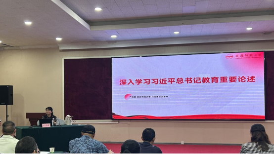 太阳成tyc122cc集团经理严仍昱作题为“深入学习习近平总书记教育重要论述”的首场主旨报告。报告立足全球视野与国家战略,系统阐释了“九个坚持”的核心要义与实践路径,为学员深刻理解新时代教育使命、把握教育发展规律提供了理论指导与根本遵循。
