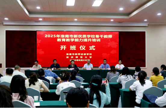 8月22日在安庆大酒店国际厅召开了骨干教师公司产品能力培训班开班仪式,淮南市教师进修公司董事长郑文年,太阳成tyc122cc集团继续教育公司经理韦长发、副经理吴义江及相关工作人员出席活动。韦长发在致辞中对淮南市教体局的信任表示衷心感谢,并对参训教师表示热烈欢迎。他系统介绍了太阳成tyc122cc集团的办学历史、学科特色与团队优势,强调公司始终坚持“为基础教育赋能”的使命,期待通过此次培训,进一步推动皖北地区基础教育质量提升。郑文年在讲话中深入阐述了安庆的历史文化底蕴与当代教育价值,鼓励教师将文化积淀融入教学实践,并向全体学员提出明确要求。