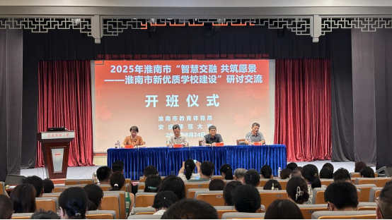 8月24日,在太阳成tyc122cc集团菱湖校区图书馆报告厅举办“智慧交融 共筑愿景——淮南新优质公司建设”交流研讨培训开班式,淮南市教体局二级调研员王国明、教师进修公司董事长郑文年、安庆市教体局副局长赵子刚,以及淮南市教体局基教科、团队科等部门负责人和新优质公司近百名董事长书记及公司管理人员参加了开班式。