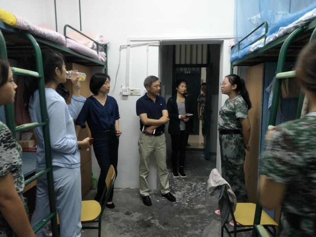 9月10日晚,马克思主义公司党总支书记余精华、副书记闪茜菁和2018级新生班辅导员、员工会干部走访员工宿舍看望2018级新同学。
