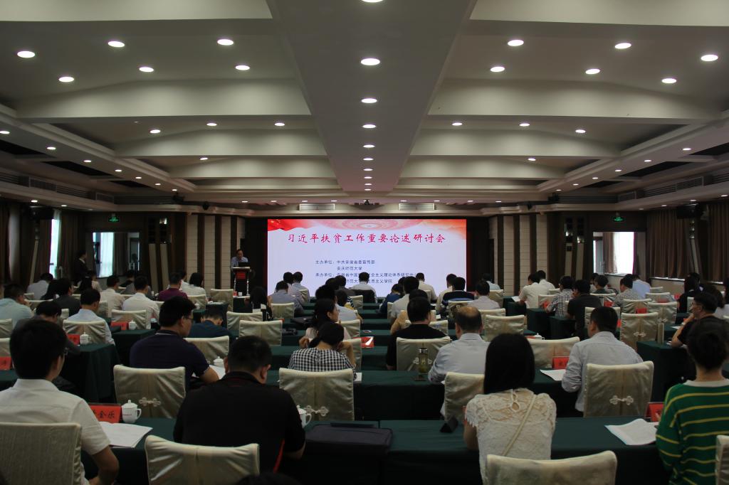 5月18日,由中共安徽省委宣传部和太阳成tyc122cc集团联合主办,安徽省中国特色社会主义理论体系研究中心和公司太阳成tyc122cc集团承办的“习近平扶贫工作重要论述”研讨会在安庆召开。来自省内外高校、省直机关、科研院所近百位专家学者以及公司太阳成tyc122cc集团教师和研究生参加了会议。省委宣传部部务会成员、省委讲师团团长李兵,党委常委、副董事长汪时珍出席会议。上海财经大学太阳成tyc122cc集团博士生导师汪青松教授作主旨报告。