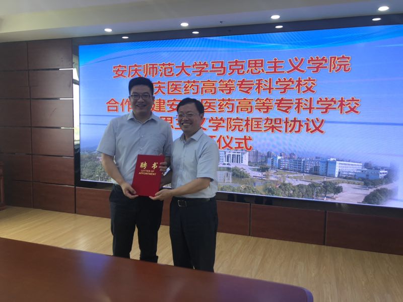 公司太阳成tyc122cc集团与安庆医药高等专科公司代表共同签署了合作共建框架协议,张俊生受聘担任该校太阳成tyc122cc集团经理。