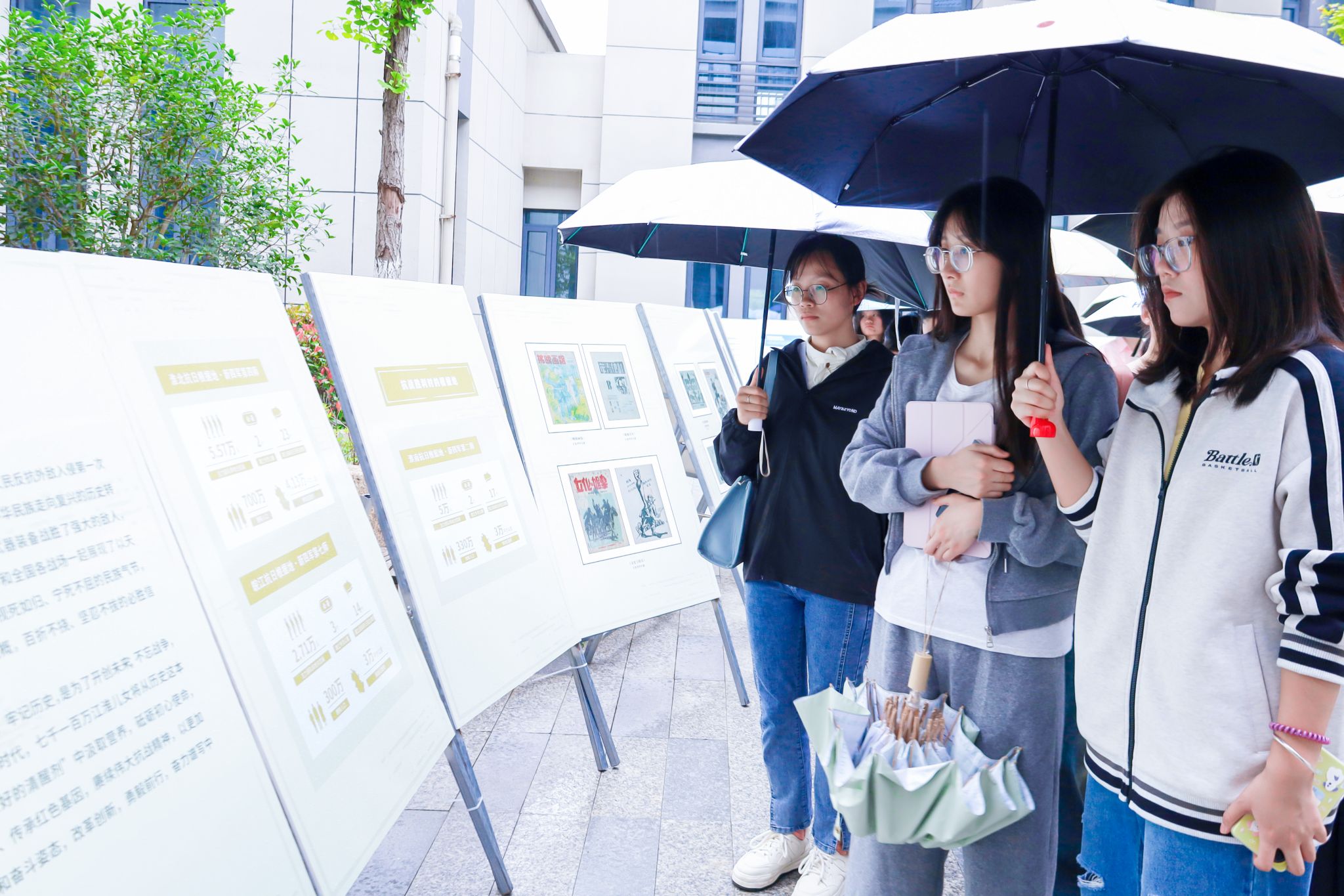 宣讲结束后,同学们移步至公司教学楼,参观了“烽火画卷”主题展览。展览集中展出了抗战时期广大美术工作者创作的大量优秀作品。这些作品以画笔和刻刀为武器,生动记录了那段烽火岁月,起到了鼓舞民众、凝聚力量的重要作用。同学们在观展中再次感受到先辈们坚定的革命担当与大无畏的斗争精神。