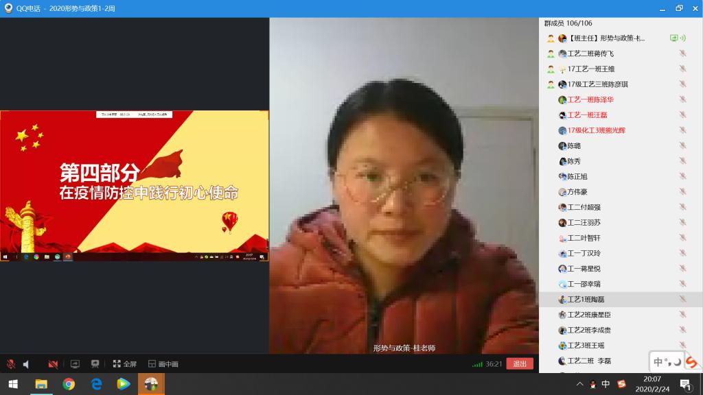 为实现思政“小课堂”和社会“大课堂”同频共振,让课程教学更好地服务于疫情防控大局,“形势与政策”教研室采用课前、课中、课后的全过程线上教学模式。