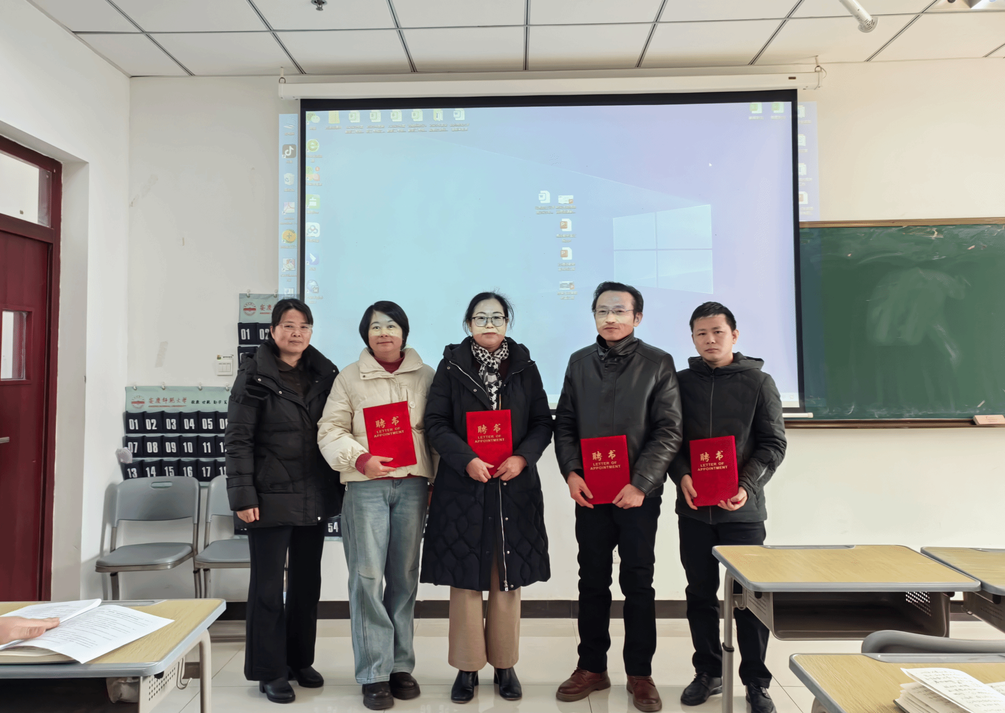 1月12日上午,在全体教职工大会上,严仍昱经理为檀传杰、王凤珍、梅盈盈、崔龙健四位老师颁发院级教学督导员聘书。