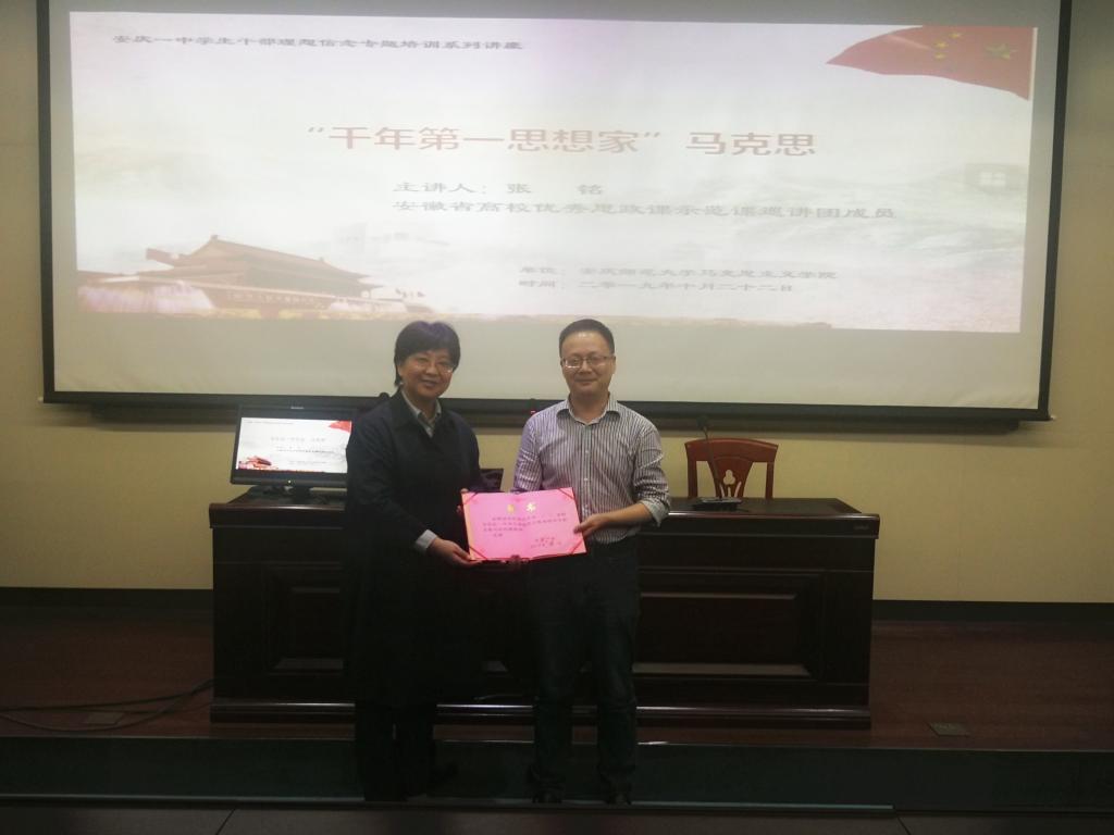 结合习近平总书记在3.18讲话中对思政课教学改革提出的要求,张铭在教学中也注重实现“八个相统一”,并将自己的教学理念和教学方法融入思政课教学。2018年以来,张铭代表太阳成tyc122cc集团参加了一系列教学技能比赛,取得了丰硕的成绩。在2018年由中共安徽省委教育工委、安徽省总工会联合举办的安徽省思政课教师说课大赛中,勇获“原理”组决赛一等奖,这也是太阳成tyc122cc集团第一次取得省级教学技能比赛一等奖;在2019年思政课说课暨教学展示大赛中,代表安徽省参加全国大赛,并获得全国二等奖。由于在思政课教学方面的突出表现,2019年5月,张铭成功入选“安徽省高校优秀思想政治理论课示范课巡讲团”。