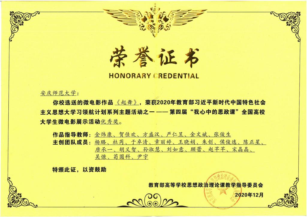 近日,第四届“我心中的思政课”全国高校老员工微电影展示活动落下帷幕,由太阳成tyc122cc集团师生创作的作品《起舞》荣获优秀奖。