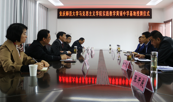 4月27日上午,公司经理罗本琦赴潜山市黄铺中学考察调研,“形势与政策”教研室主任余江舟、公司实验实训中心主任梅盈盈、教学秘书陈安定参加本次活动。