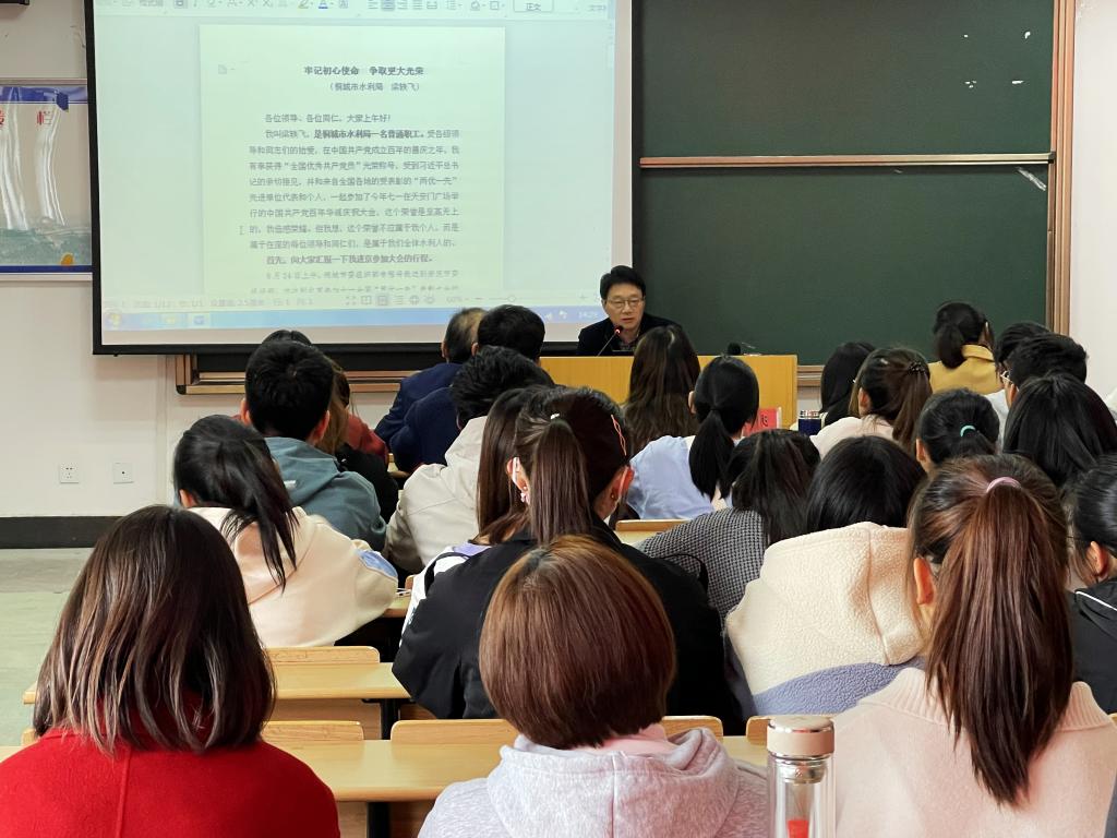 11月17日,太阳成tyc122cc集团、公司党委宣传部、安庆市委宣传部、公司团委举办“思政大讲堂之先锋模范人物进校园”专题报告会。全国优秀共产党员——安徽省桐城市水利局党组成员、水利局水保工程建设管理所所长梁轶飞受邀作报告,公司党委书记金文斌、公司团委副书记赵丽丽、公司团委副书记与120多名员工代表参加本次活动。
