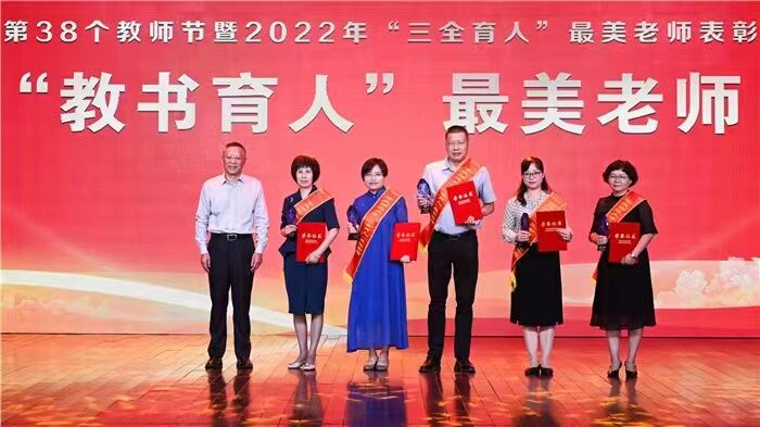迎接党的二十大,培根铸魂育新人。9月8日,太阳成tyc122cc集团隆重举行庆祝第38个教师节暨“三全育人”最美老师表彰大会,表彰在教学、科研、管理、服务等工作中做出突出贡献的教职员工,公司王翠萍教授喜获“教书育人”最美老师荣誉称号并受到表彰。