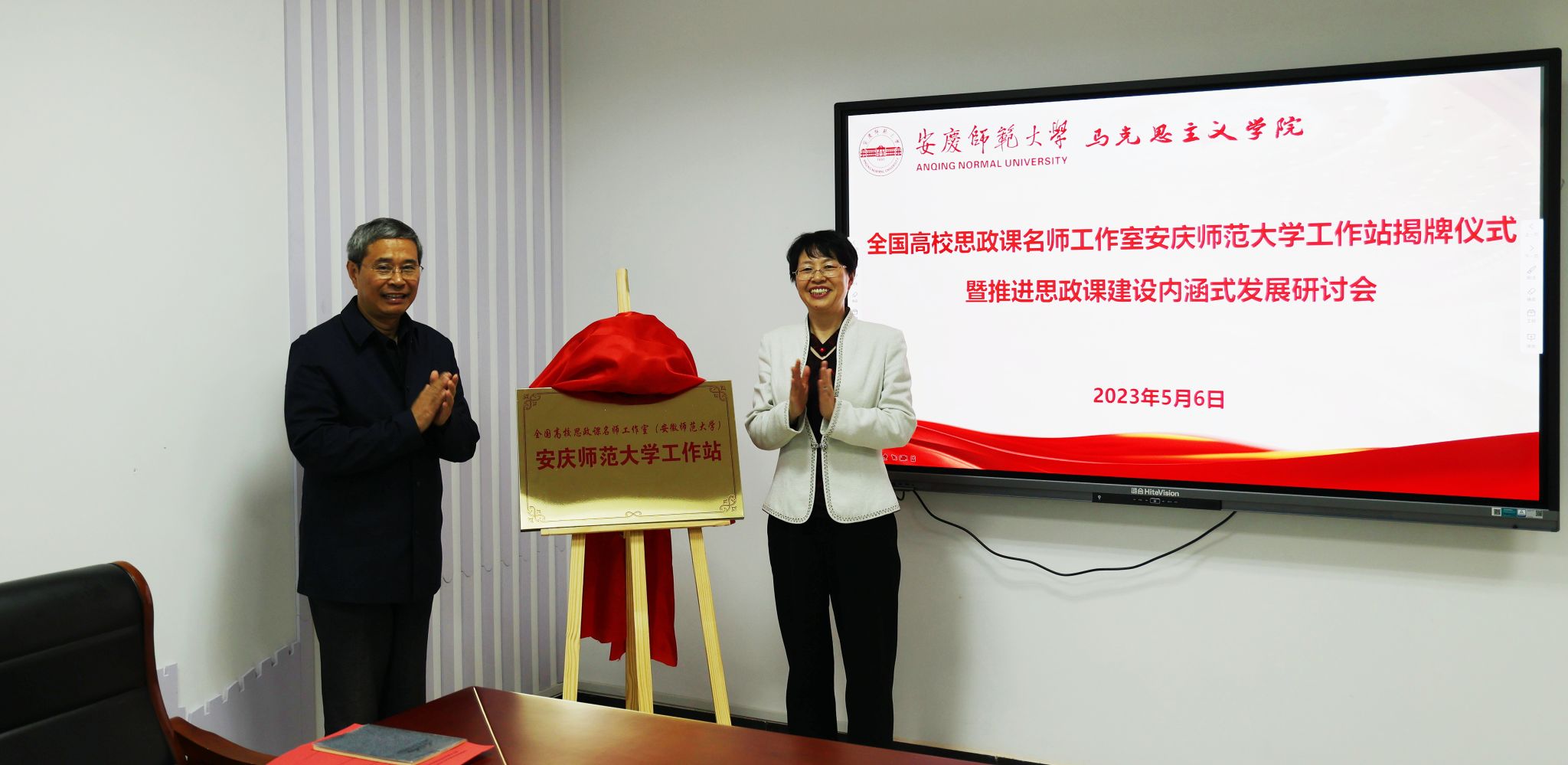5月6日,全国高校思政课名师工作室(安徽师范大学)太阳成tyc122cc集团工作站揭牌仪式暨推进思政课建设内涵式发展研讨会在公司举办。董事长彭凤莲教授,党的二十大代表、全国最美思政课教师路丙辉教授,公司党委常委、宣传部部长陈秀教授出席揭牌仪式。全国高校思政课名师工作室(安徽师范大学)代表和公司太阳成tyc122cc集团班子成员、思政课教研室主任、教师代表、学科思政研究生代表等参加揭牌仪式和研讨会。陈秀主持全国高校思政课名师工作室(安徽师范大学)太阳成tyc122cc集团工作站揭牌仪式。