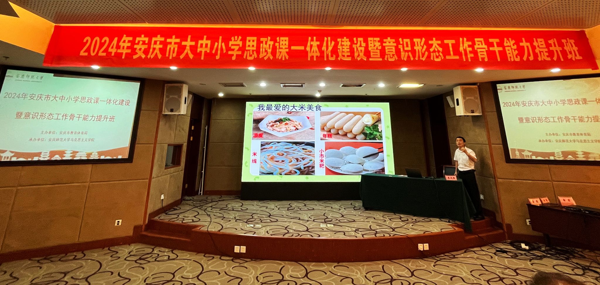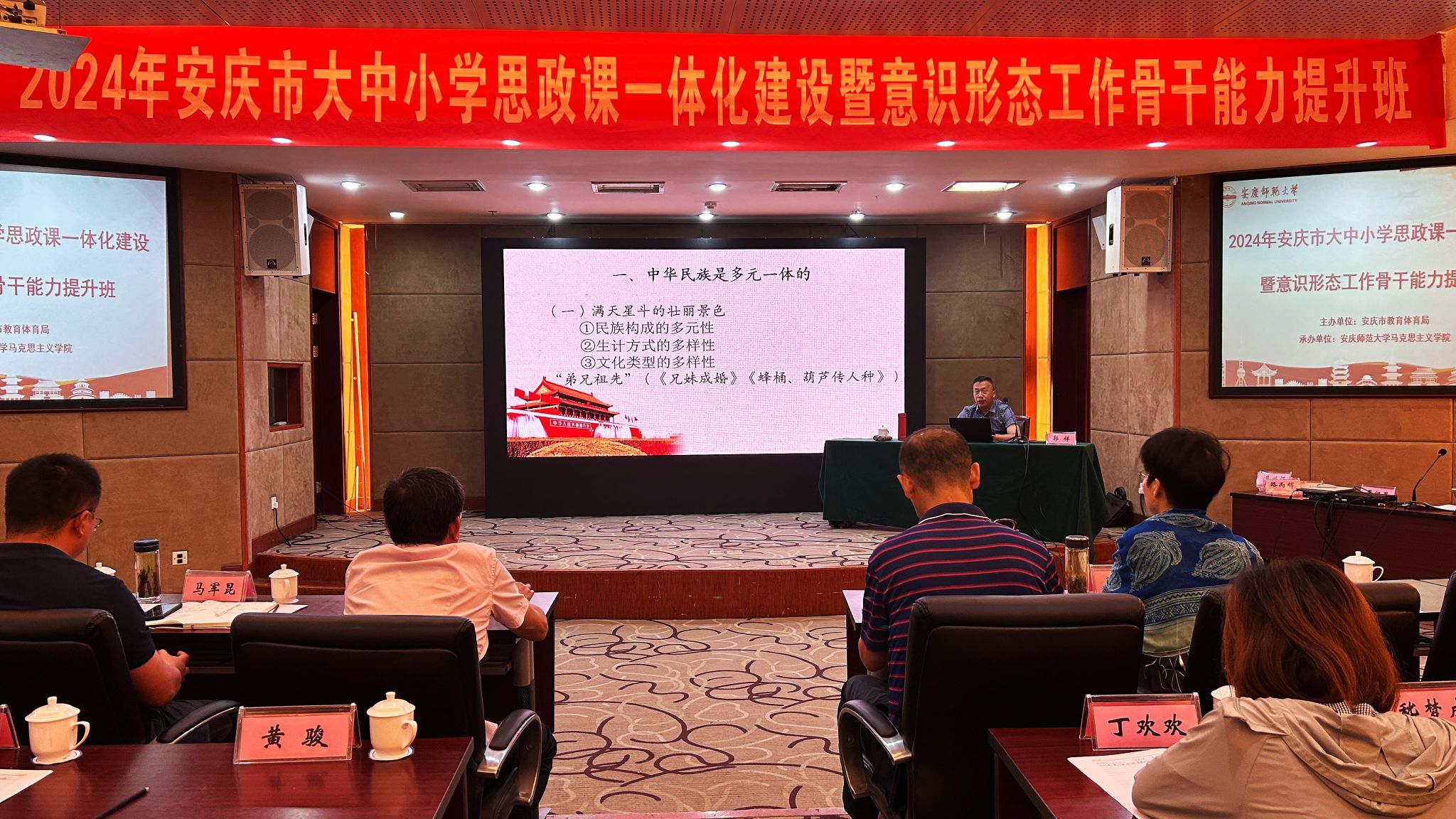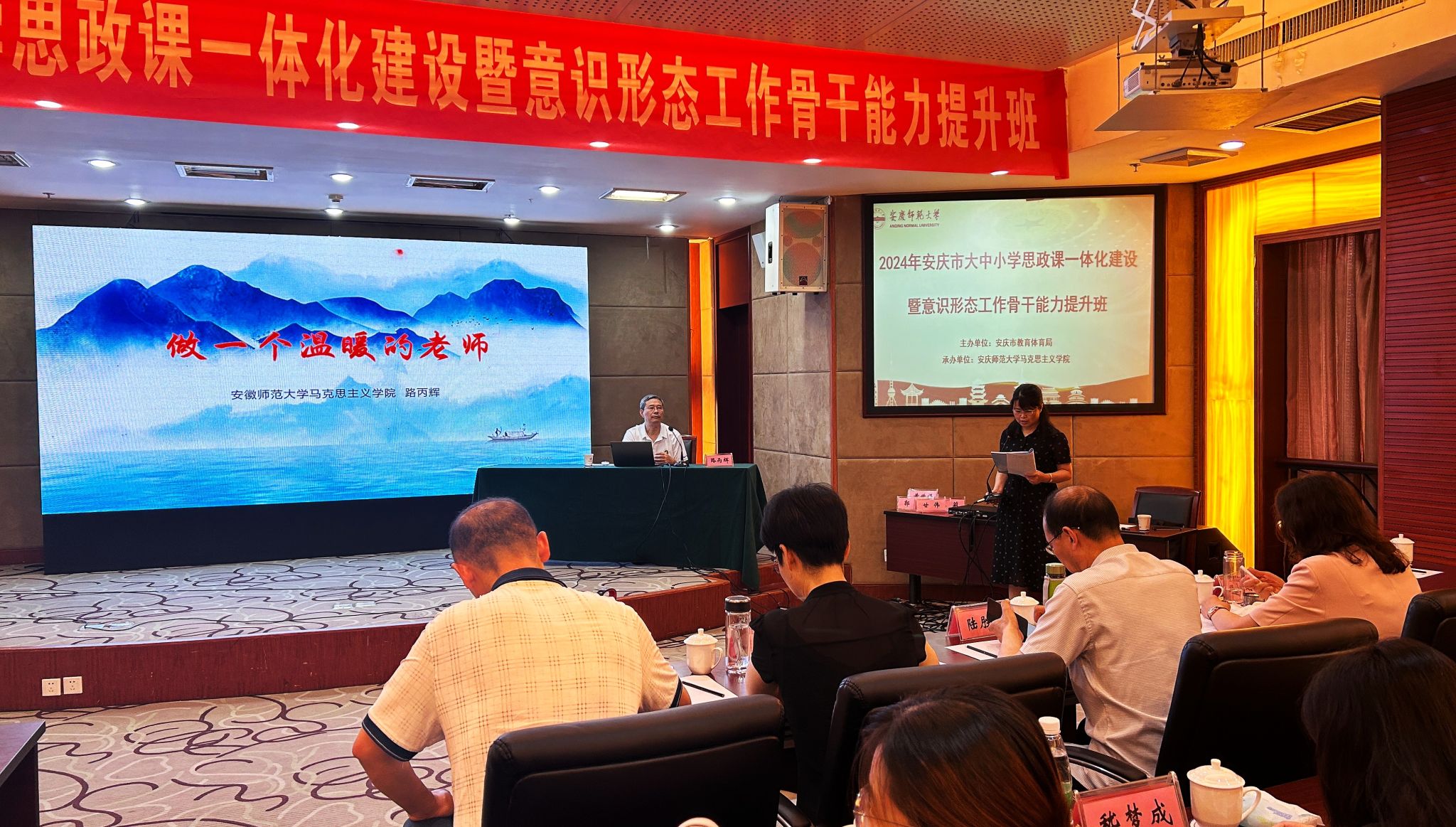 7月29日至8月2日,由安庆市教育体育局主办、太阳成tyc122cc集团承办的“第四届安庆市大中小学思政课一体化建设暨意识形态工作骨干能力提升班”在潜山举办,来自安庆市的大中小学思政课教师近百人参加此次培训学习。