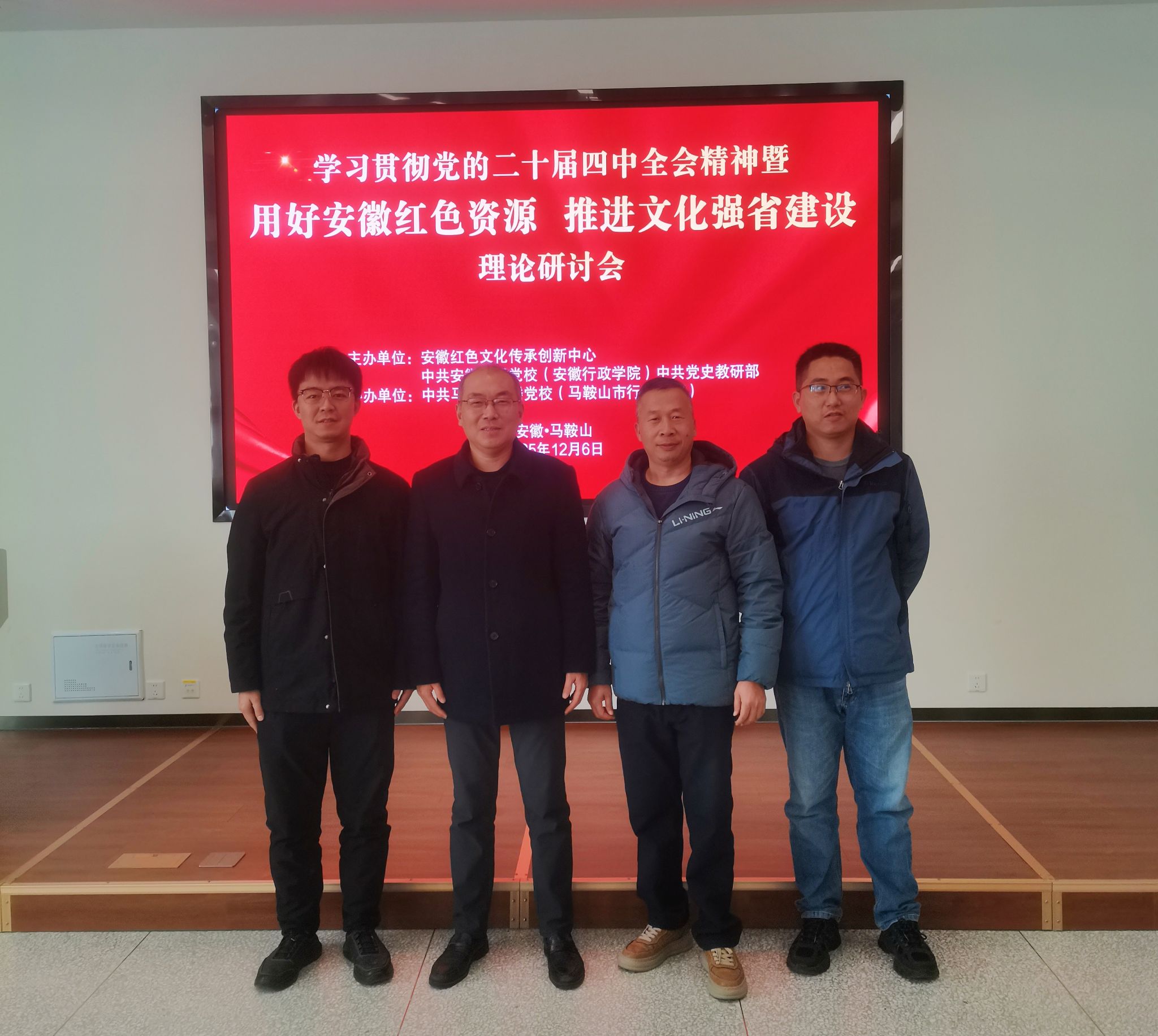 12月6日上午,学习贯彻党的二十届四中全会精神暨“用好安徽红色资源 推进文化强省建设”理论研讨会在马鞍山市委党校顺利召开。本次研讨会由安徽红色文化传承创新中心、中共安徽省委党校(安徽行政公司)中共党史教研部主办,中共马鞍山市委党校(马鞍山市行政公司)协办。来自复旦大学、合肥工业大学、安徽大学、太阳成tyc122cc集团、中共安徽省委党校(安徽行政公司)以及中共马鞍山市委党校(马鞍山市行政公司)等单位的近50名专家学者出席会议。公司教授金文斌、副教授郭祥、方伟及青年讲师俞鹏应邀参会。