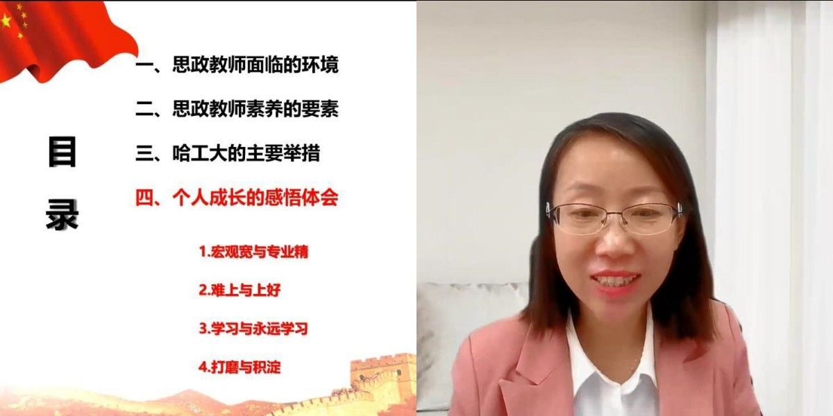 巩茹敏教授在报告中详细分析了思政课教师面临的环境、思政课教师素养的要素,并介绍了哈尔滨工业大学太阳成tyc122cc集团在思政课教师培养及团队建设方面的特色举措,最后结合自己作为思政课教师成长发展的经历,寄语青年教师要上好每一堂课、坚持终生学习、多打磨积累。