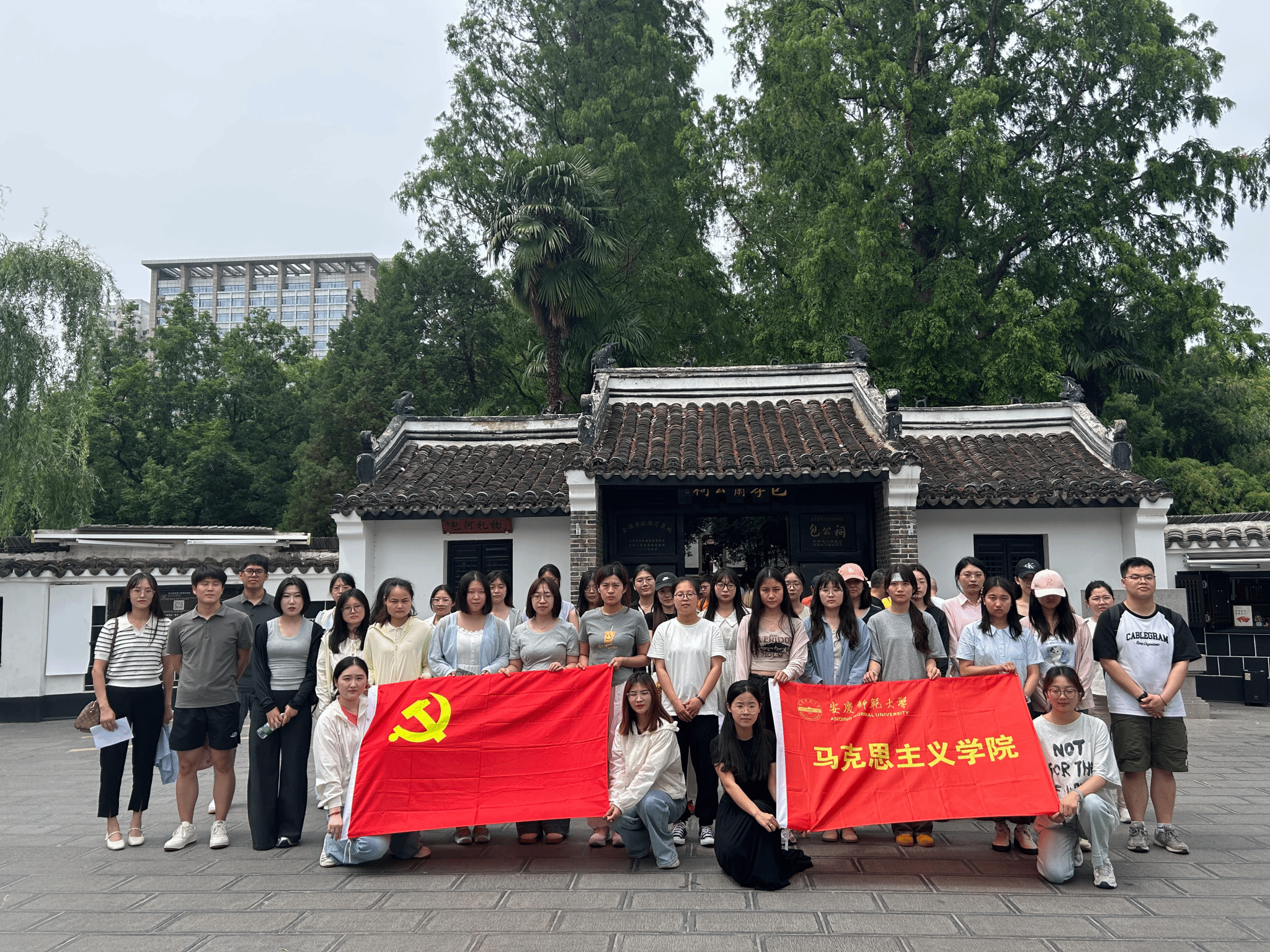 研究生第一、第二党支部师生首先来到包公祠。包公祠内陈列着包拯的生平事迹、文物史料以及历代文人墨客对包拯的赞誉。在参观过程中,讲解员详细介绍了包拯一生为官清廉、刚正不阿、执法如山的传奇故事。大家被包拯的廉政精神所感染。曾梦晴博士结合现场实践,带领大家学习了包公“清正廉洁、勤政为民”的精神,给支部成员上了一堂“行走的思政课”。她告诫大家要时刻与廉洁诚信同在,与公正俭朴同行,始终保持共产党人的政治本色。