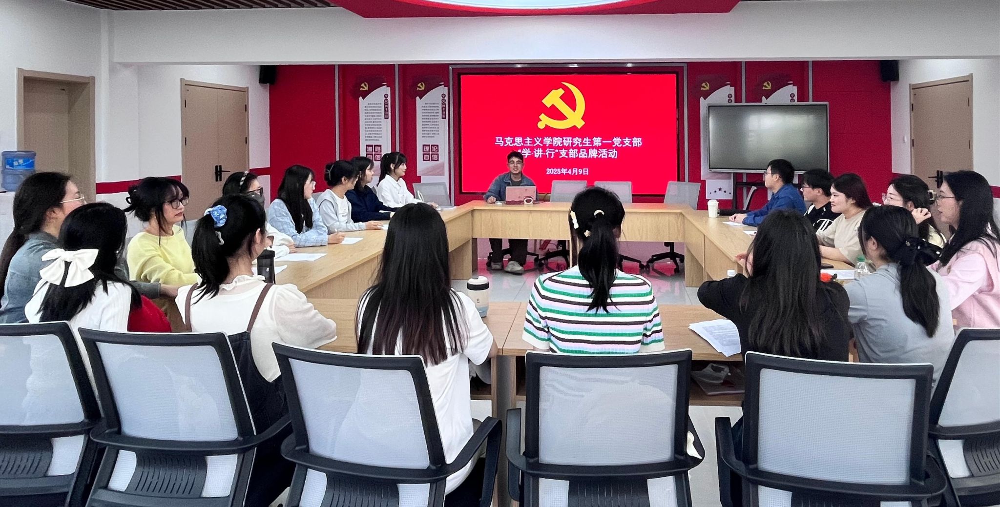 4月9日下午,公司研究生第一党支部于“一站式”员工社区思政影厅开展了“思想领航,理论筑梦”为主题的“学·讲·行”支部品牌活动。本次活动旨在深化理论学习,强化思想引领。活动设计分为理论学习、经典研读、和互动答题三个环节,由支部书记主持,支部党员、积极分子共30余人参加。