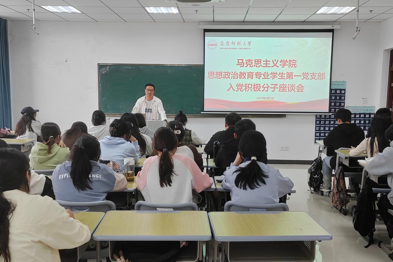 4月7日,公司在Q楼304教室召开思想政治教育专业第一党支部入党积极分子座谈会。第一党支部书记田梦甜、支部党员代表及全体入党积极分子参与会议。