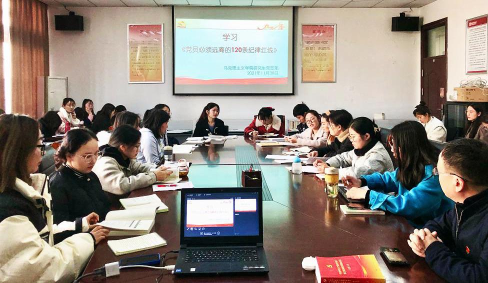 会上,全体同学还共同学习《党员必须远离的120条纪律红线》,加强支部纪律建设。支部书记表示,从严从实抓好党风廉政建设具有重大意义,让党员知敬畏、存戒惧、守底线,远离违纪红线是十分必要的。学习过程中支部书记带领同学们对相关条例进行了深度解读,利用违规违纪反面典型,充分开展警示教育。