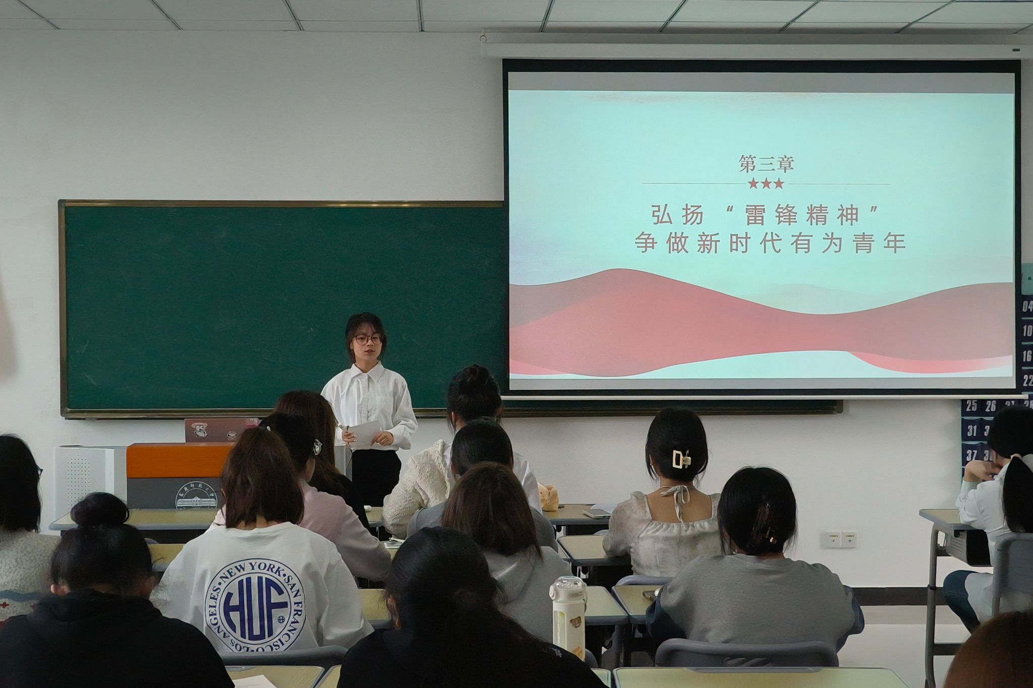“无论时代如何变迁,“雷锋精神”永不过时……”在本次宣讲中,“青年新声”宣讲团的三位成员分别从“重温雷锋同志光辉生平”“感悟‘雷锋精神’”“弘扬‘雷锋精神’”三个章节带领团校学员领悟雷锋精神的丰富内涵,感受“雷锋精神”的时代价值,体会弘扬“雷锋精神”的重要意义。 “在新时代,我们应当进一步弘扬‘雷锋精神’,使其成为我们民族精神的象征,在全社会形成良好的社会道德风范。”作为活动宣讲人之一,思想政治教育专业2023级(2)班王佳雯鼓励团校学员要学习和弘扬“雷锋精神”,将“雷锋精神”内化于心、外化于行,争做新时代的有为青年。