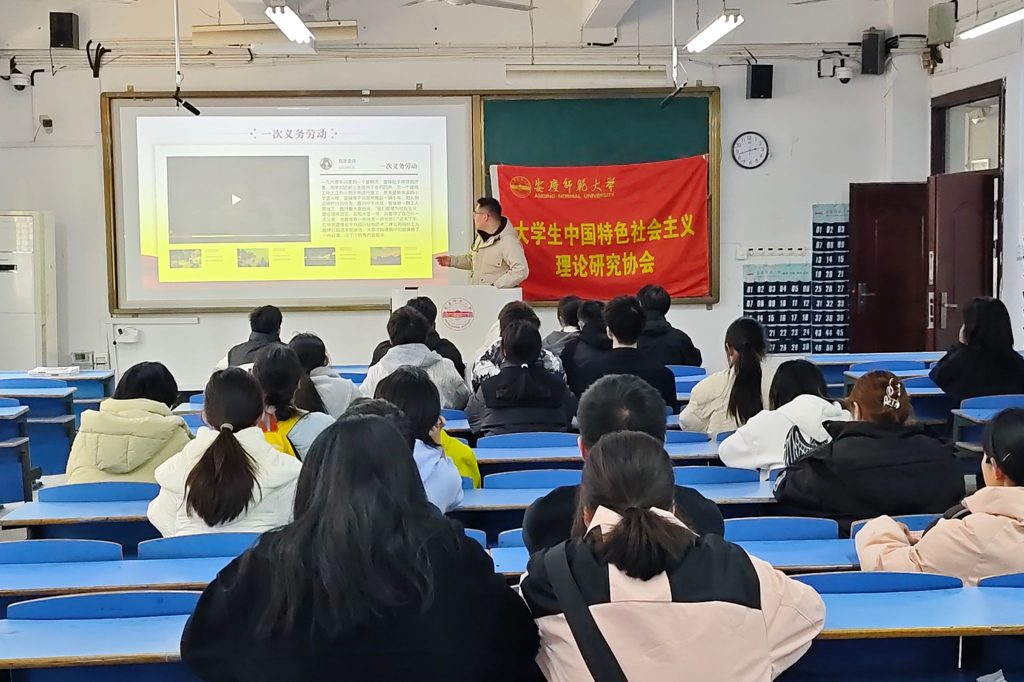 从雷锋雨夜送大娘回家,到雷锋利用休息时间帮工地运砖,“敬敷思源”志愿服务队走进安庆市华茂社区居委会,利用简笔画、漫画等形式,将雷锋助人为乐、无私奉献的故事娓娓道来。“我们不仅要学习雷锋精神,更希望能在孩子们的心中播下学雷锋、树新风的种子。”当一个个生动的故事跃然“板”上,看着孩子们专注的模样,思想政治教育专业2023(3)班刘欣怡坦言,孩子们不再只是从书本上了解雷锋,而是能通过更多形式汲取榜样的力量。