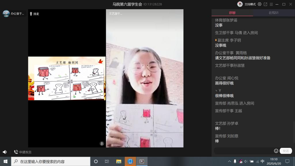 在学习成果展示环节,同学们绘制了漫画,制作了手抄报,录制了视频。其中思想政治教育专业2019级4班杨同同展示了她的漫画作品,她讲解道:“我设计这幅作品的目的是想告诉大家,民法典是为人民谋福利谋权益的法律保障。”思政专业2019级2班周星绘制的手抄报也表达出她的真实感受:“民法典是一部关乎人民基本利益的法律,体现在我们生活的方方面面,我们应当积极学习相关内容并加以宣传,让民法典能够更好地走进人民心中。”