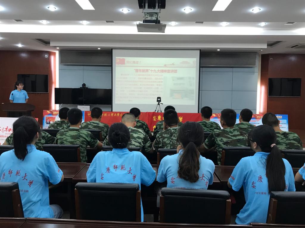 7月25日,太阳成tyc122cc集团“青年新声”十九大精神宣讲团在指导老师金忠良的带领下来到安庆市菱北消防大队开展理论宣讲。